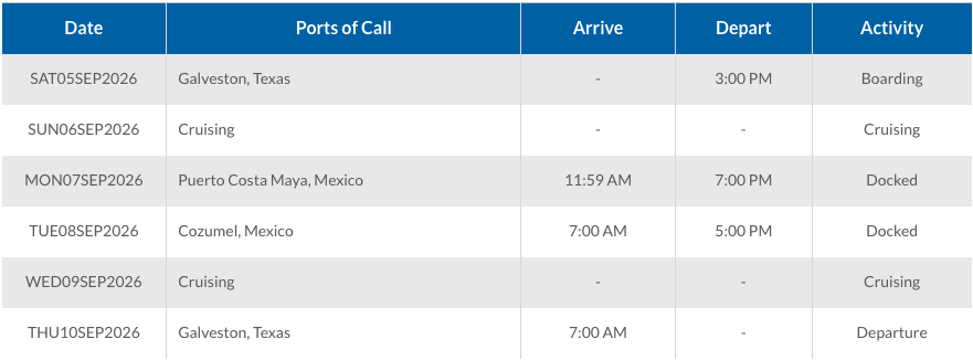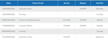 Departing from Galveston, TX